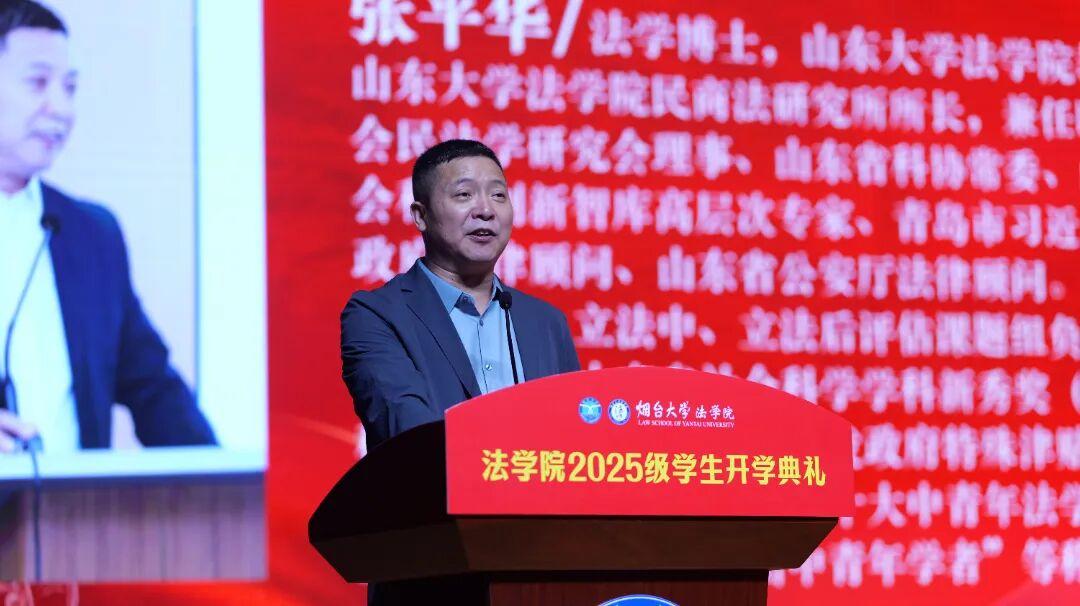 最后,他勉励新生,高中阶段的良好基础不代表未来必然优秀,成长过程中需持续努力、及时修正方向。同学们要想成长为一名优秀的法律人,就应当传承烟台大学优良校风,牢记院训,克己修身,传承烟大法学的精神脉络,培养自己对法学专业的敬畏与热爱,以博士点建设为新起点锚定自身成长方向,成长为社会主义现代化法治建设的栋梁之材。