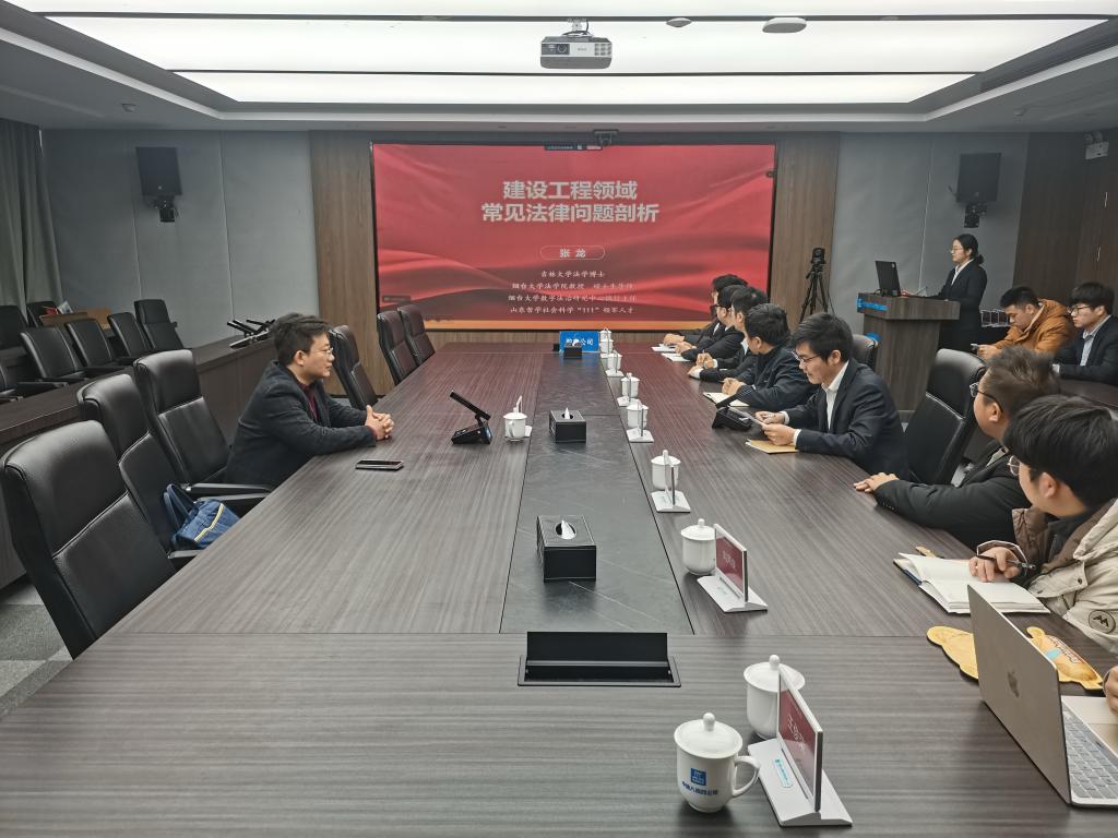 2025年12月4日是第十二个“国家宪法日”,12月1日至7日是第八个“宪法宣传周”。为提升全员对建设工程领域常见法律纠纷的风险识别、防控、化解能力,推动公司的法治与合规建设,12月5日上午,中建八局四公司胶东公司启动宪法宣传周系列活动,邀请我院张龙教授为全体员工开展建设工程领域常见法律纠纷培训,胶东公司全体部门人员、项目人员参会。