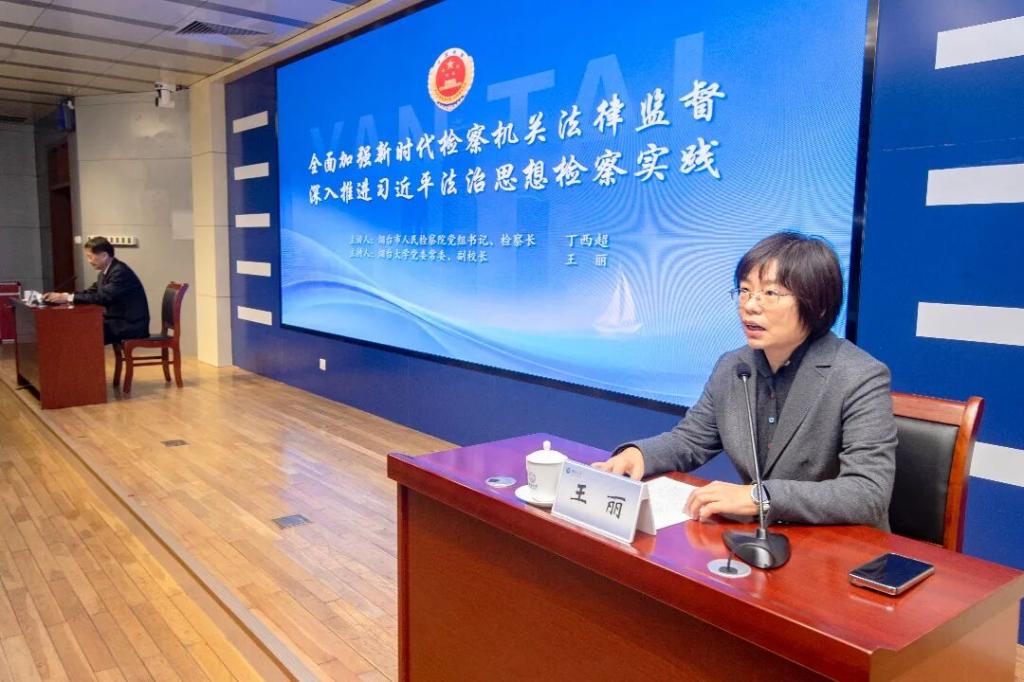 12月12日,烟台市人民检察院党组书记、检察长丁西超走进烟台大学,以“全面加强新时代检察机关法律监督 深入推进习近平法治思想检察实践”为题,对百家乐平台推荐 师生进行专题授课,由烟台大学党委常委、副校长王丽主持。此次授课是检校合作协议签署后的重要实践举措,旨在以检察实务赋能法学教育,助力高素质法治人才培养。烟台市人民检察院副检察长于泳,党组成员、政治部主任刁清华,相关部门负责人员,百家乐平台推荐 党政领导班子,师生代表共同参与听课。