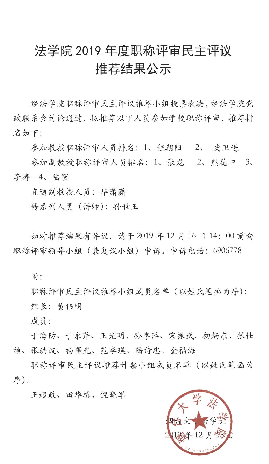 百家乐平台推荐 2019年度职称评审民主评议推荐结果公示